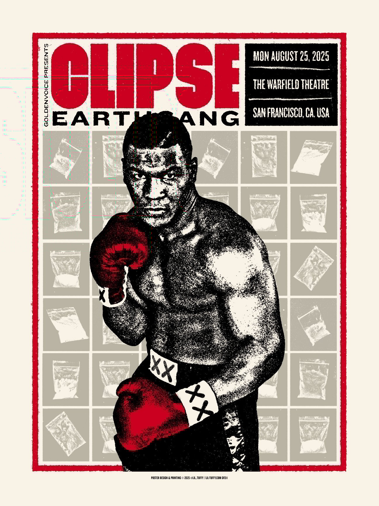 Clipse · Earthgang The Warfield Theatre · Aug 25, 2025 · San Francisco Client: Goldenvoice Dimensions: 18" x 24" · Edition: 200 · Colors: 3