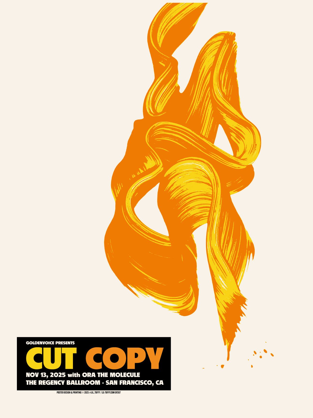Cut Copy · Ora the Molecule The Regency Ballroom · Nov 13, 2025 · San Francisco Client: Goldenvoice Dimensions: 18" x 24" · Edition: 200 · Colors: 3