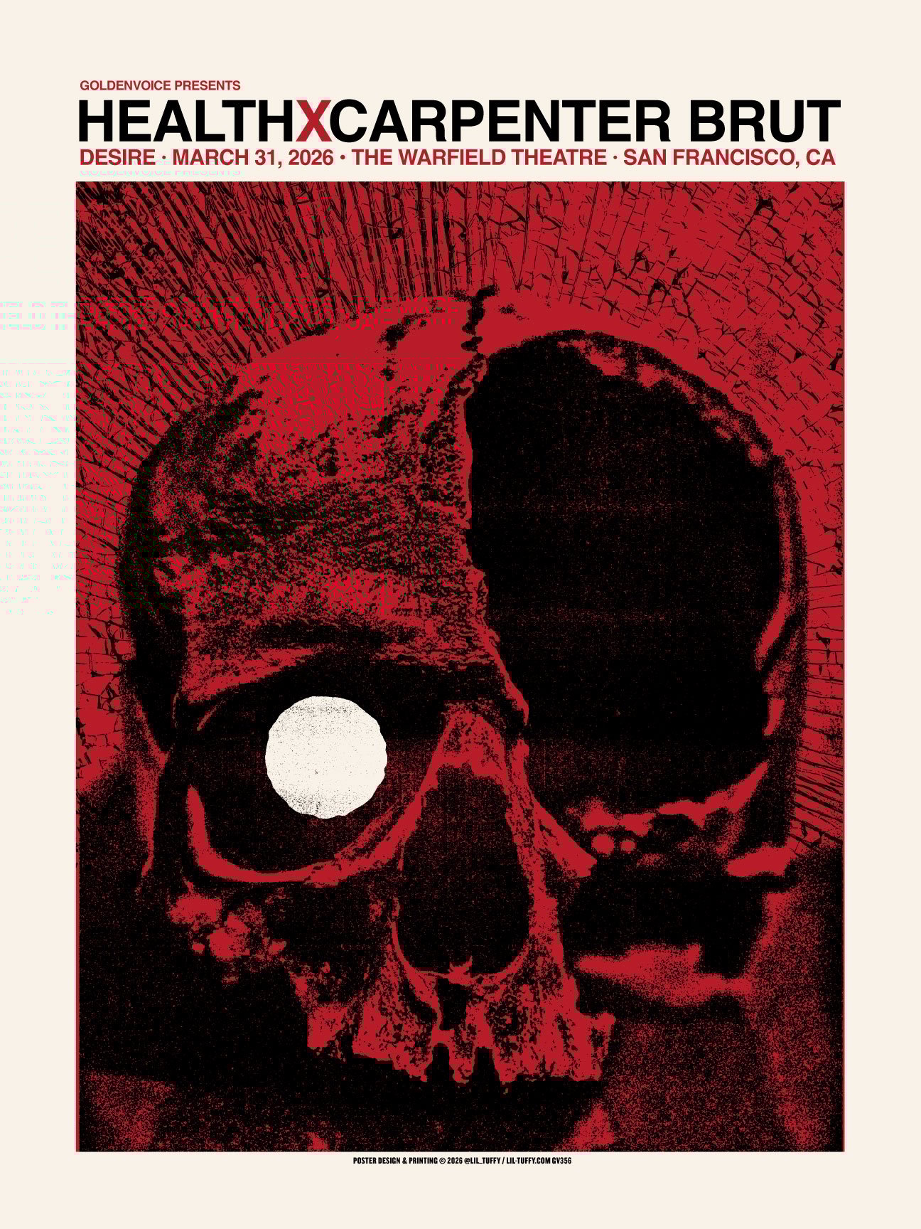Health x Carpenter Brut · Desire The Warfield Theatre · Mar 31, 2026 · San Francisco Client: Goldenvoice Dimensions: 18" x 24" · Edition: 200 · Colors: 2