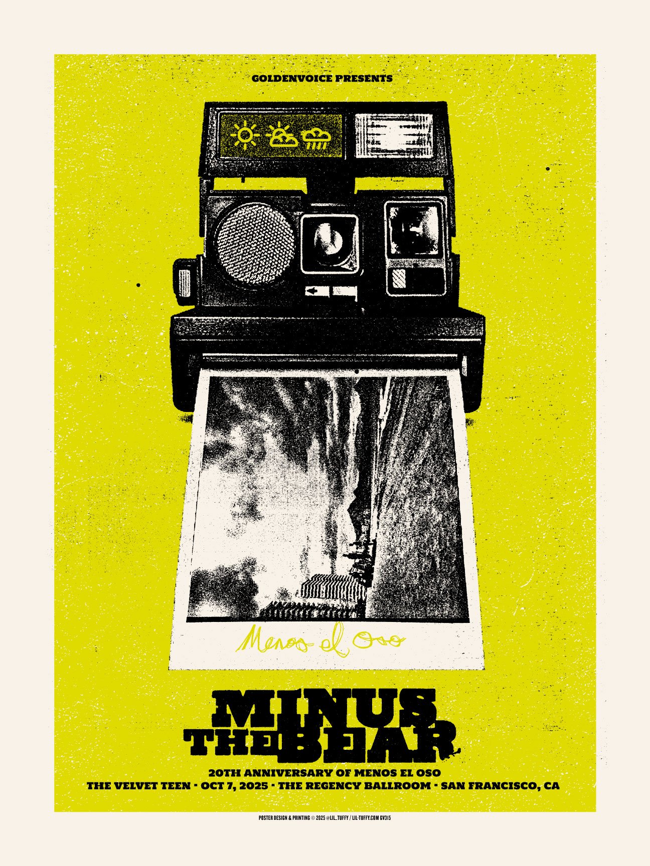 Minus the Bear · The Velvet Teen The Regency Ballroom · Oct 7, 2025 · San Francisco Client: Goldenvoice Dimensions: 18" x 24" · Edition: 200 · Colors: 2