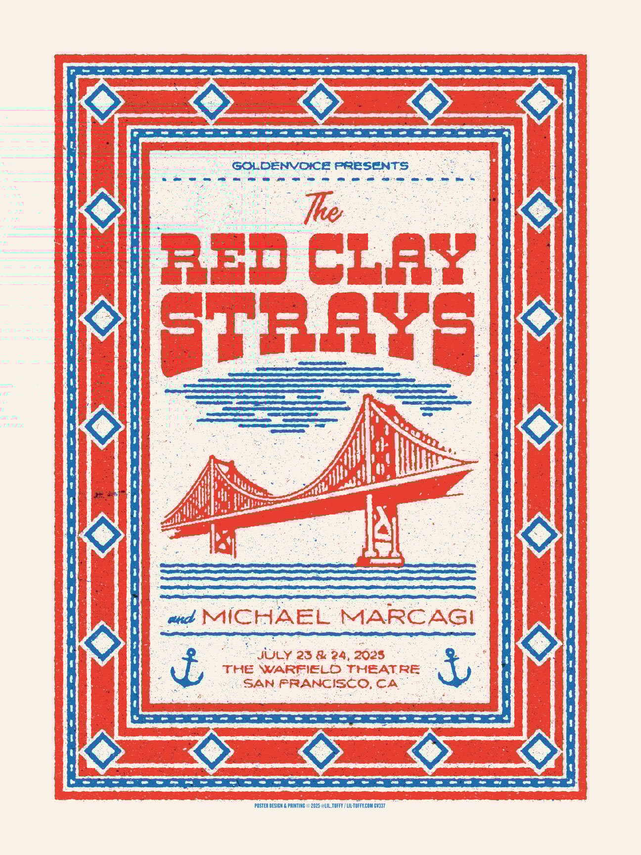 Red Clay Strays · Michael Marcagi The Warfield Theatre · July 23 & 24, 2025 · San Francisco Client: Goldenvoice Dimensions: 18" x 24" · Edition: 200 · Colors: 2