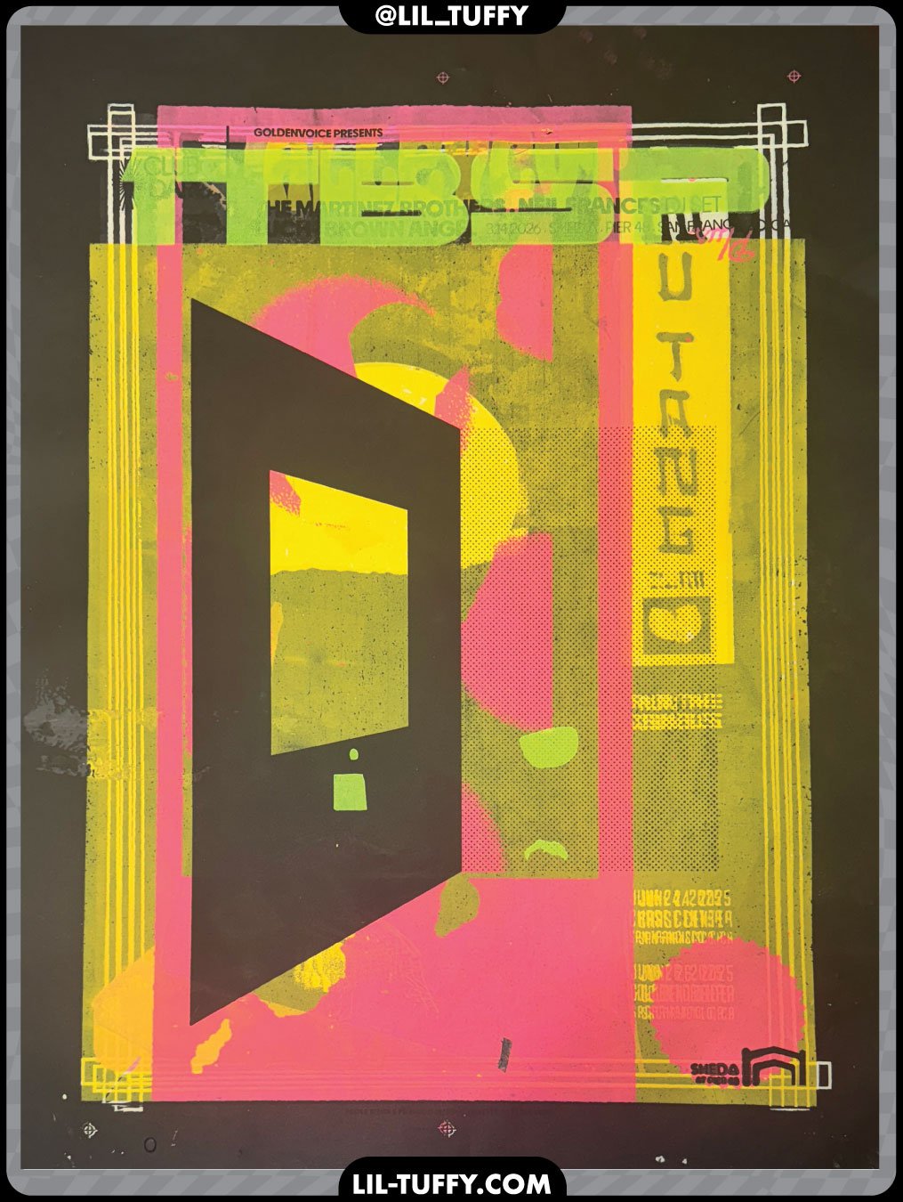 Because these prints begin their lives as by-products they are not treated as precious items. In addition to ink, these prints are accented by dirt, bent corners, shoeprints, beer spills and sundry other accidental imperfections that all contribute to the final mono-print.