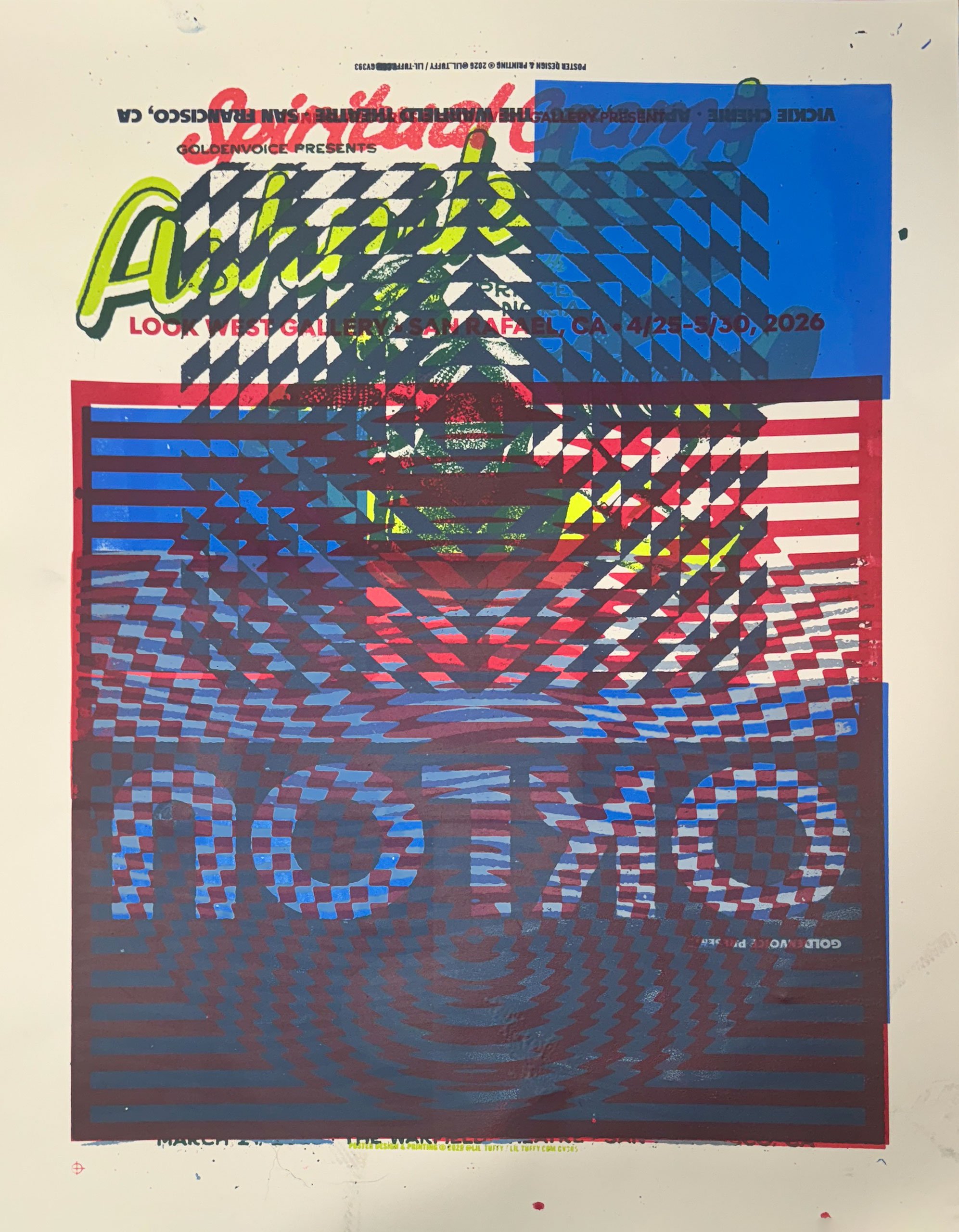 Test prints are artifacts of the screen-printing process. The original function varies from sampling the tone or opacity of ink, verifying registration or to simply clear ink from the screen at the end of the run.