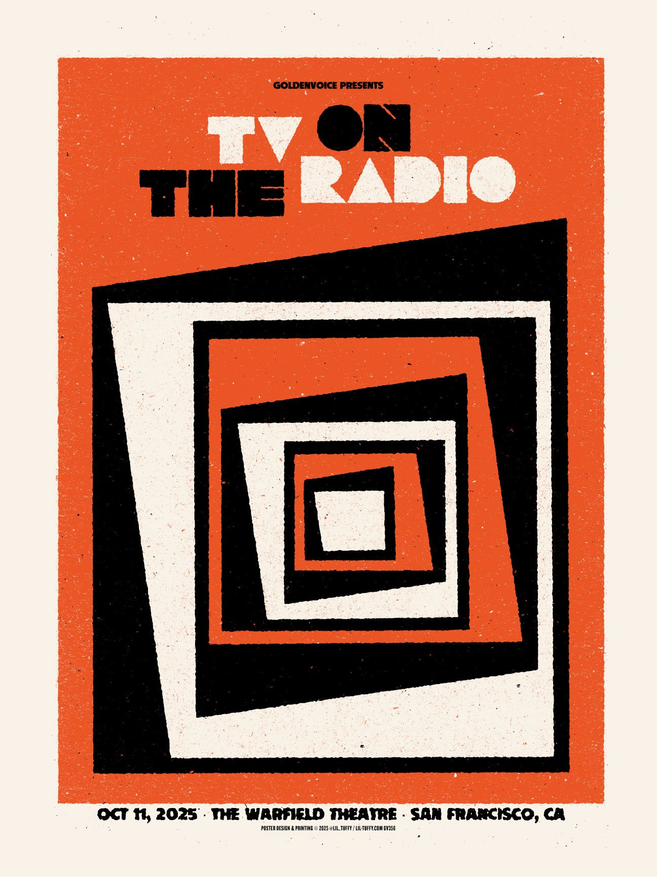 TV on the Radio The Warfield Theatre · · Oct 11, 2025 · San Francisco Client: Goldenvoice Dimensions: 18" x 24" · Edition: 200 · Colors: 2
